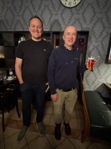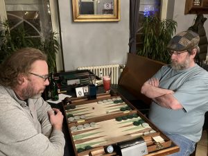 49 Punkte, sieben Siege, mehr geht nicht. Andi Walther zeigt, daß das geht, auch mit Bier. Locker liegt der Cube gleich im ersten Spiel des Finales auf der acht und auf Tilmans Seite, und schwupps ist die Sache auch schon vorbei. In der Conso sitzen ebensolche Freunde des Bieres zusammen. Am Ende steht es hier schnell fünf zu null für Timothy Jaxon vor Thorsten Miesel. In der Gesamtwertung setzt sich Fuad Karimi ab. Dahinter tobt der Kampf um die Plätze.