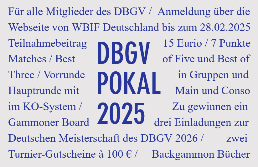 Ab März wird wieder um den DBGV-Pokal gespielt. Wer gewinnt diesmal das wertvolle Gammoner-Board? Und knacken wir den Teilnehmerrekord von 92 aus dem letzten Jahr?